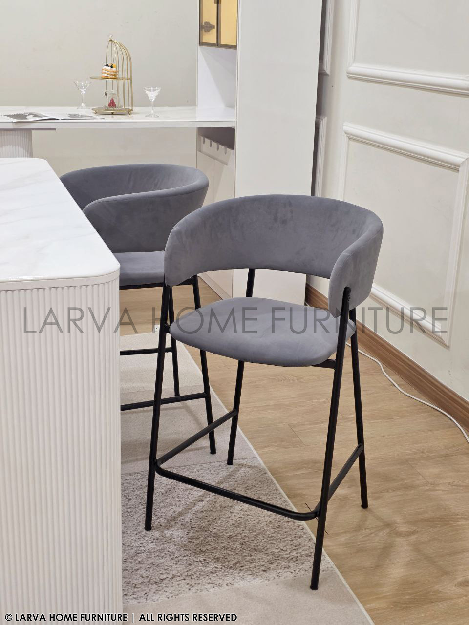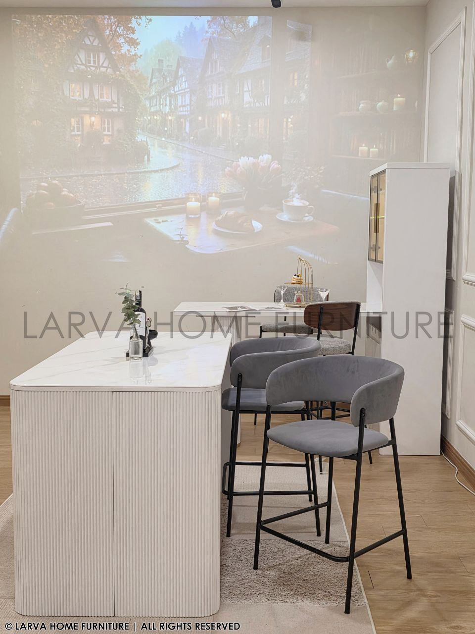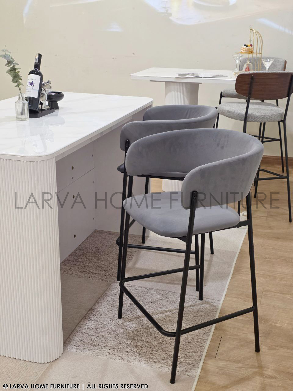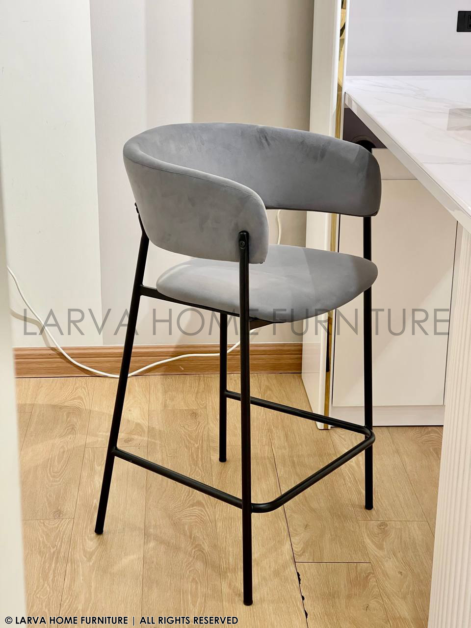 Supported by sturdy black metal legs with a built-in footrest, the stool ensures stability without compromising on aesthetics. Whether placed at a home island, breakfast bar, or a commercial café setting, it adds a refined sense of modern charm. This bar stool is not just a seat—it’s a stylish upgrade to any bar space.