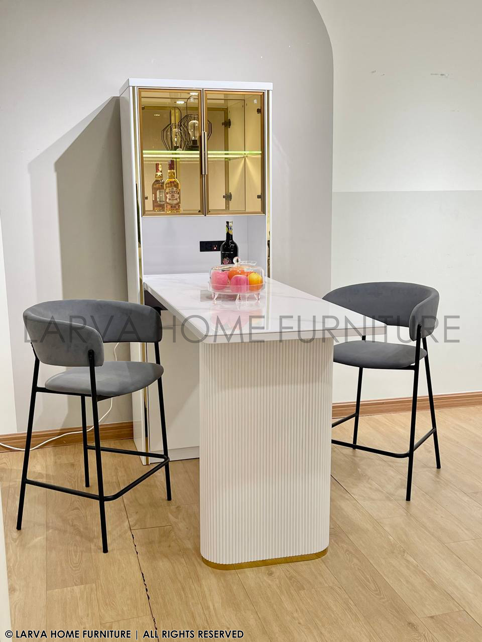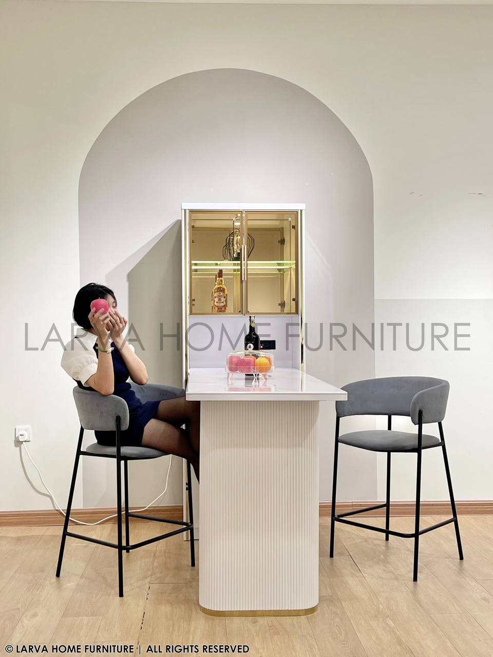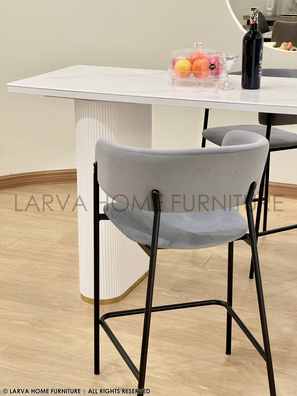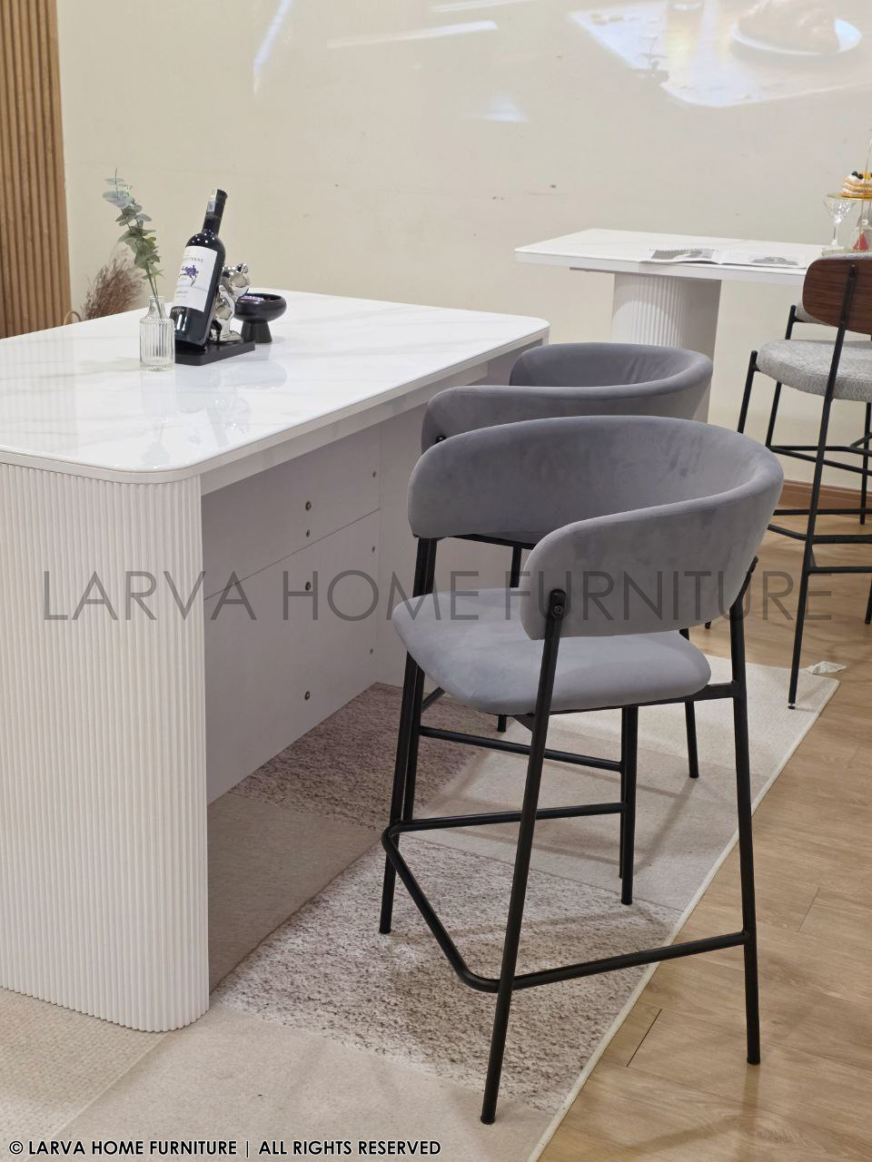 Supported by sturdy black metal legs with a built-in footrest, the stool ensures stability without compromising on aesthetics. Whether placed at a home island, breakfast bar, or a commercial café setting, it adds a refined sense of modern charm. This bar stool is not just a seat—it’s a stylish upgrade to any bar space.