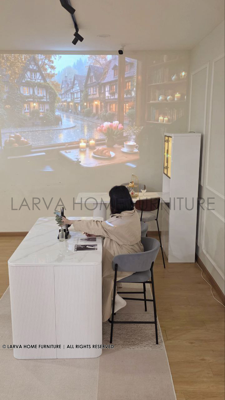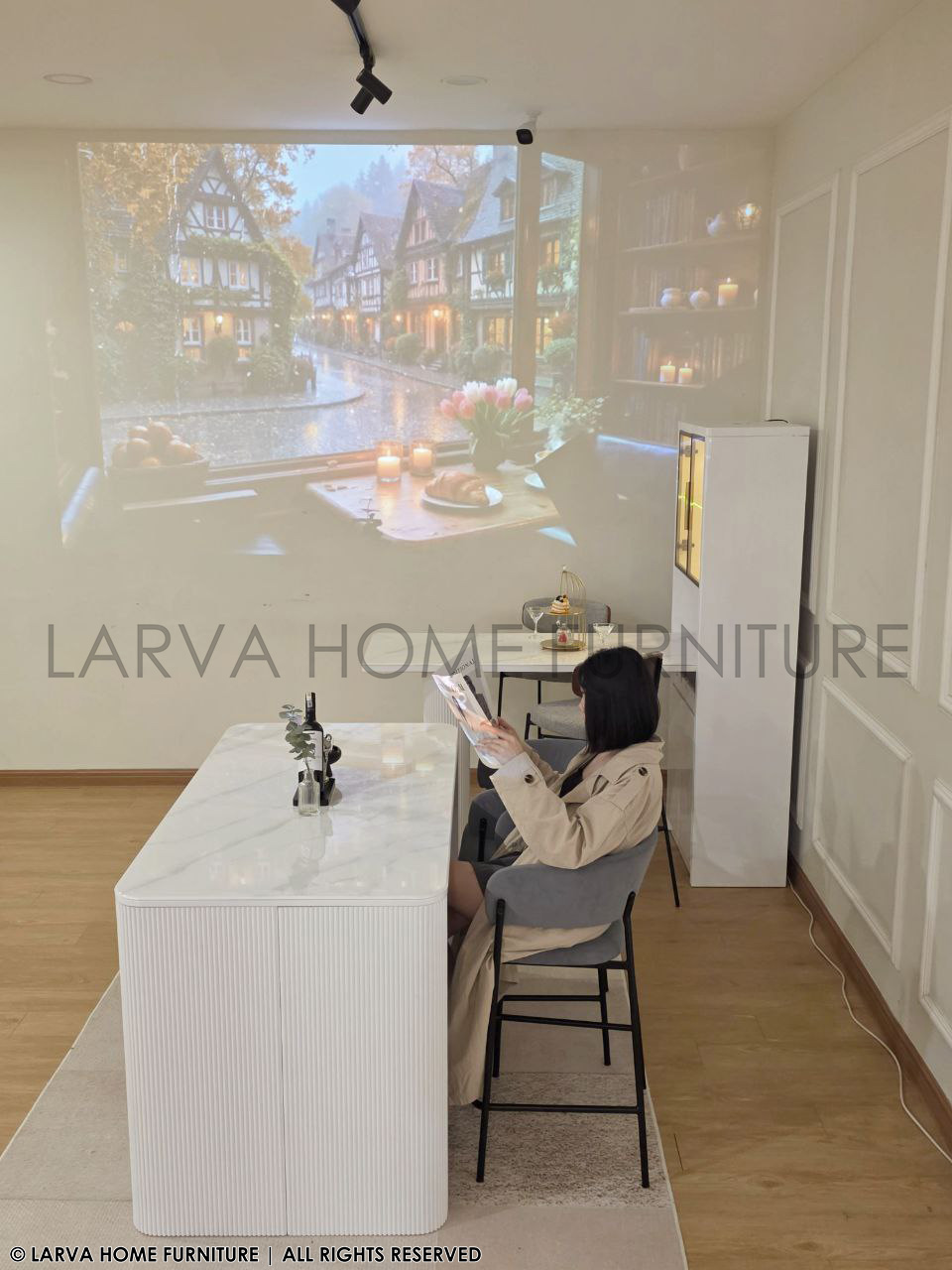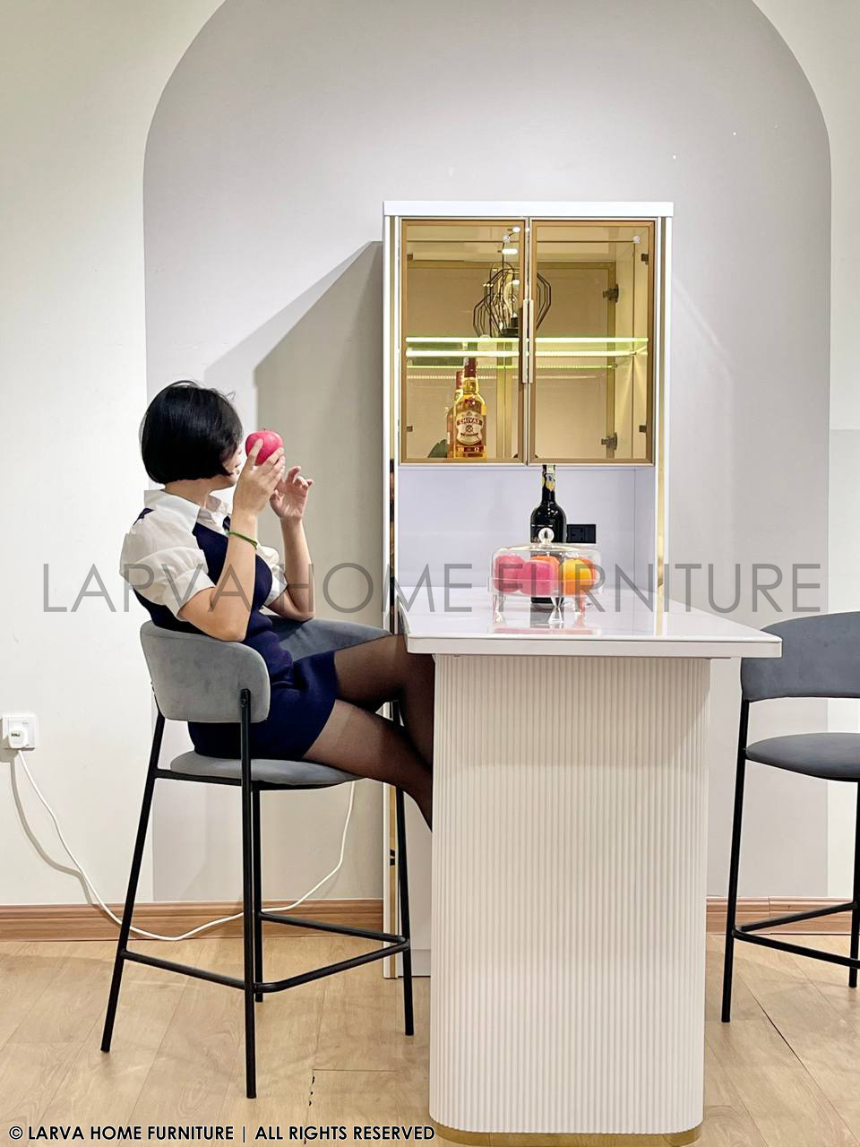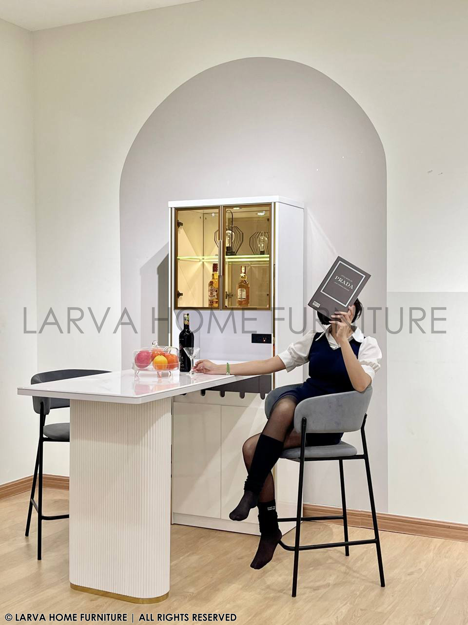 Supported by sturdy black metal legs with a built-in footrest, the stool ensures stability without compromising on aesthetics. Whether placed at a home island, breakfast bar, or a commercial café setting, it adds a refined sense of modern charm. This bar stool is not just a seat—it’s a stylish upgrade to any bar space.