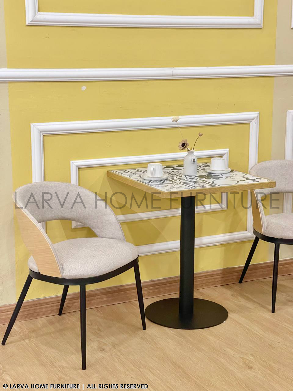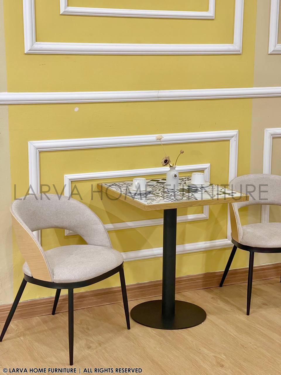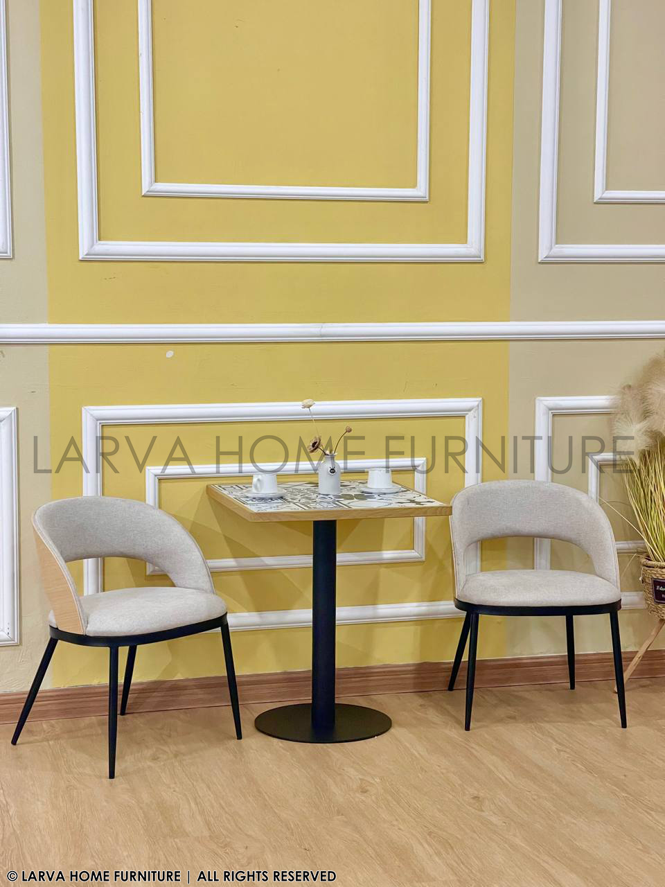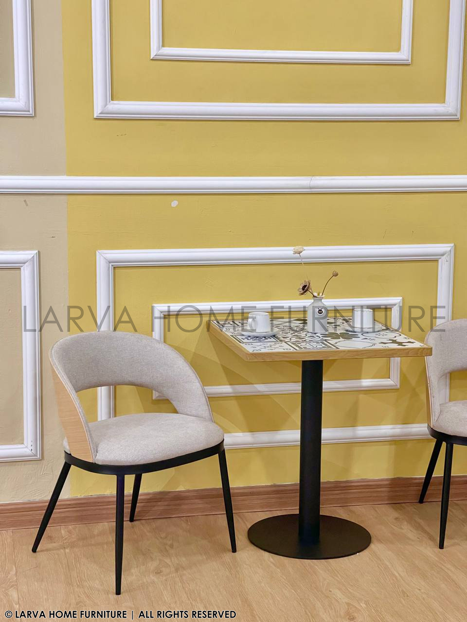 This Cailyn Designer Chair showcases a sculpted, contemporary form with a blend of fabric and natural wood accents. The curved backrest provides supportive comfort while adding visual sophistication. Its modern profile works well in dining rooms, reception areas, or stylish home corners. The wooden detail brings warmth to the overall design. Sturdy metal legs ensure stability and durability. A refined and versatile statement chair.